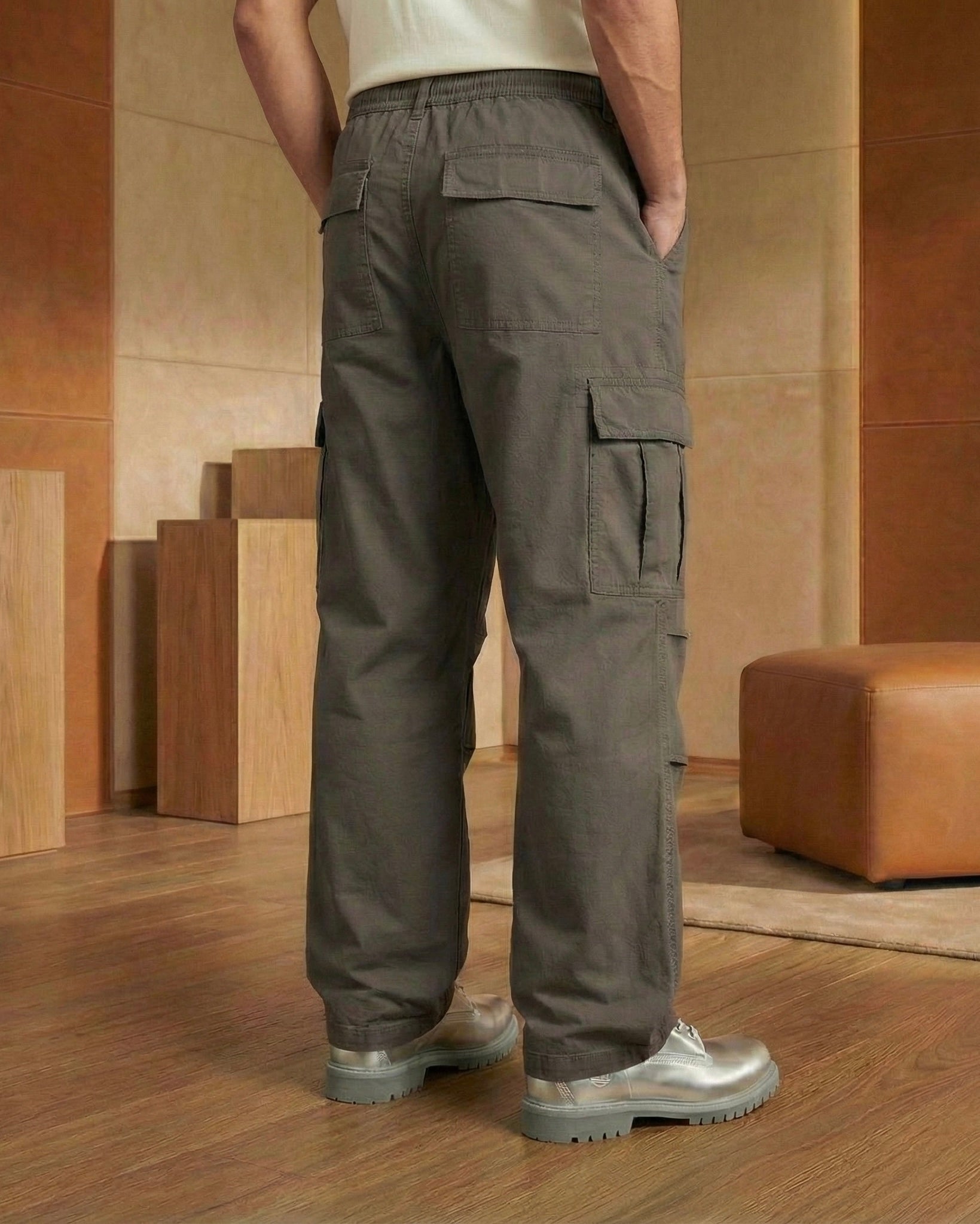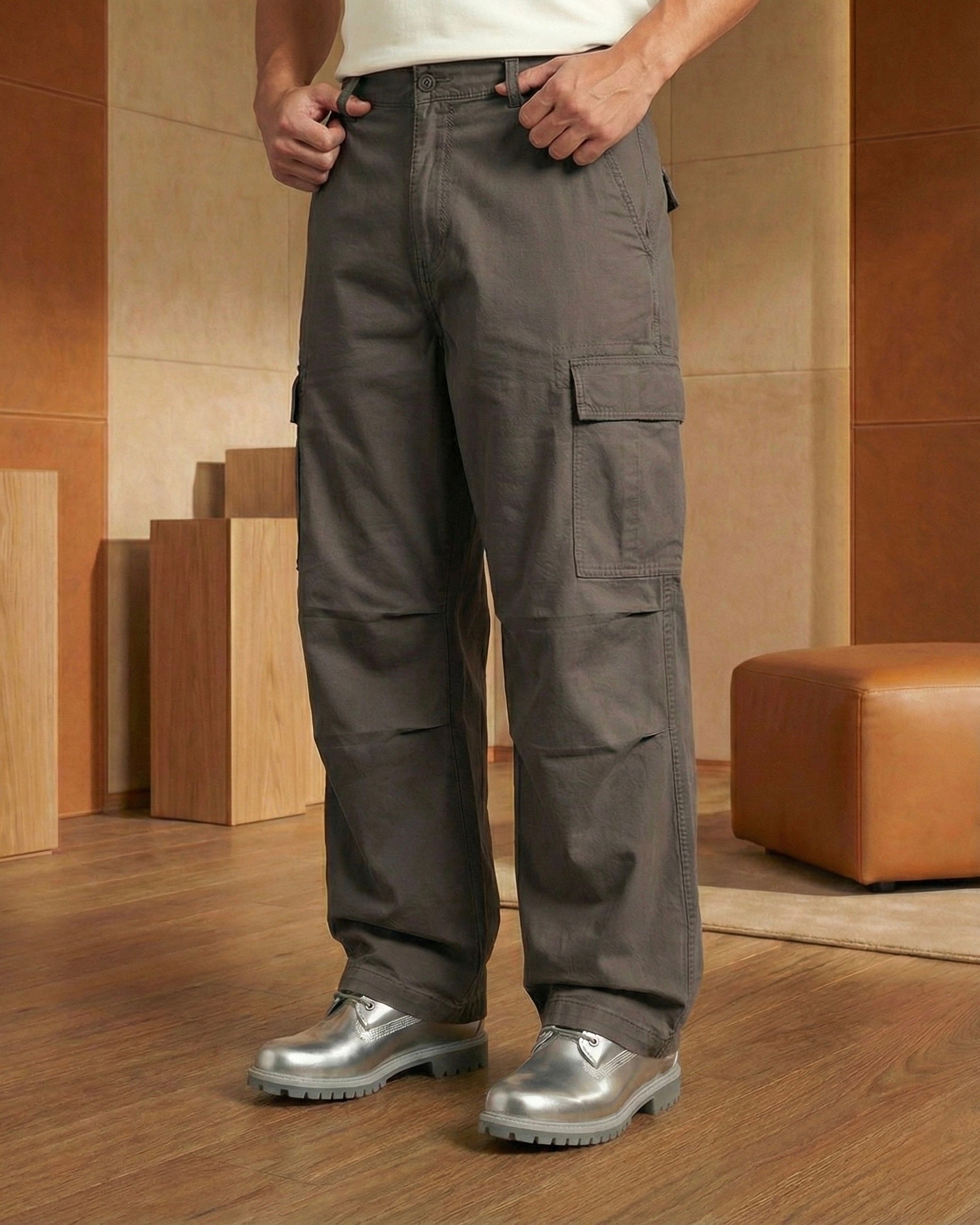 These cargos feature a regular-to-baggy fit inspired by classic American workwear. Designed with back pockets, functional knee-level pockets, and two pleated stitch details below the knees for added character. Made from 100% cotton, they offer both comfort and structure — perfect for streetwear looks or laid-back casual outfits.