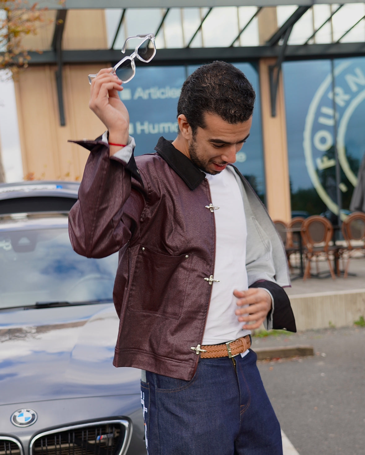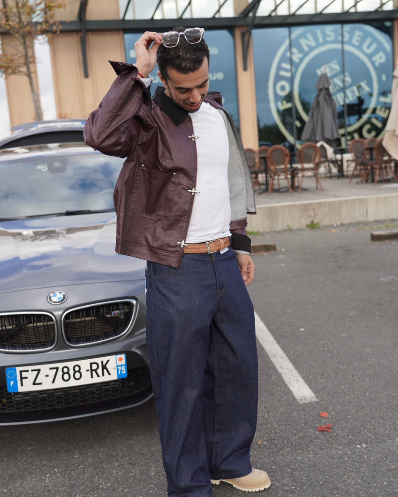 Crafted from a mid-weight denim cotton fabric, this jacket blends structure and comfort with a distinctive camo print. It features a full zip closure complemented by three fireman-style metal clasps for a bold utilitarian edge. The cropped fit adds a modern silhouette, balancing modern crop fits inspiration with refined streetwear aesthetics.